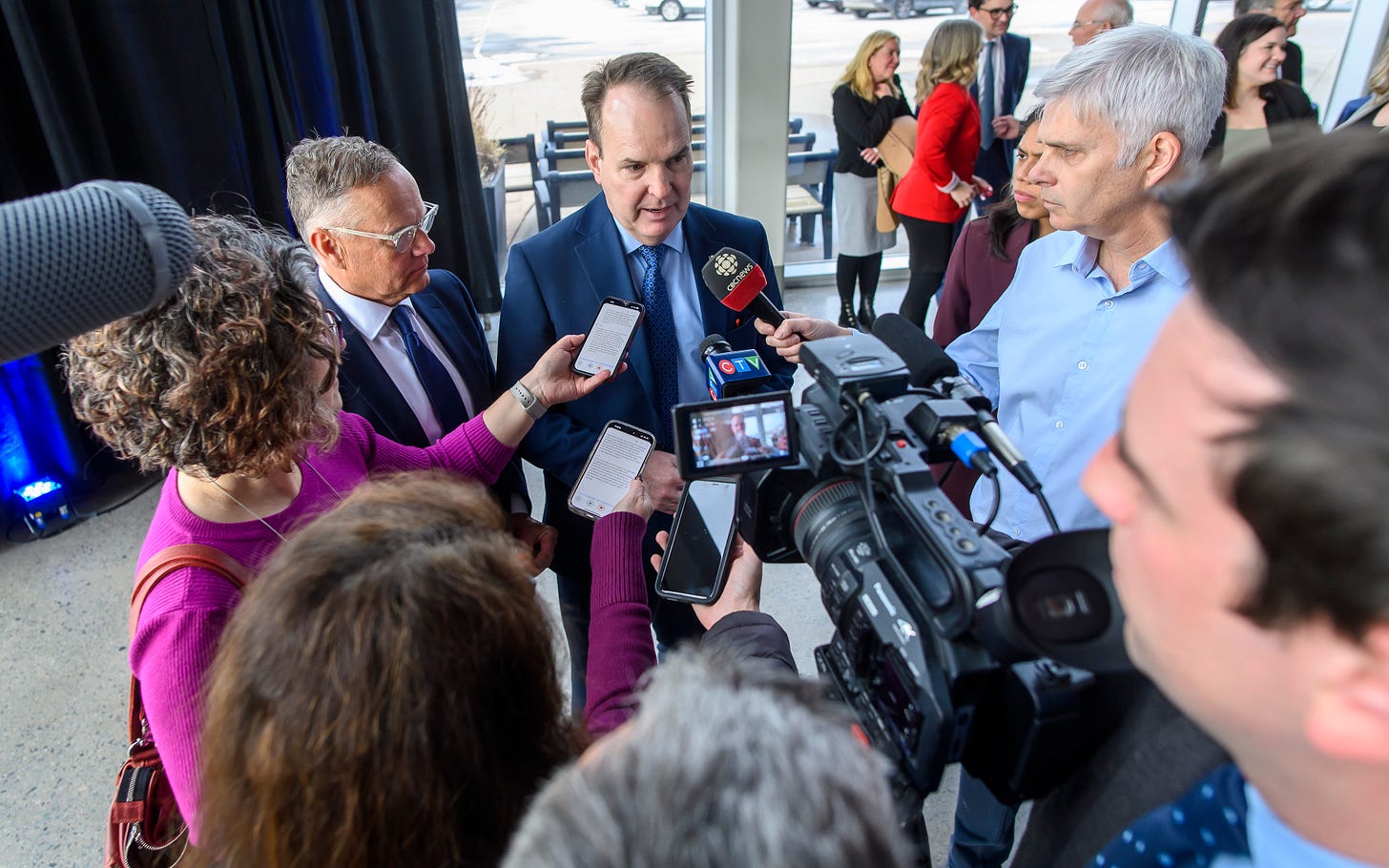 Listening off to the side was the man who wants to replace her, Conservative leadership candidate and former Municipalities minister Daniel Allain, accompanied by long-time Conservative operative and former provincial party executive director Lisa Keenan.